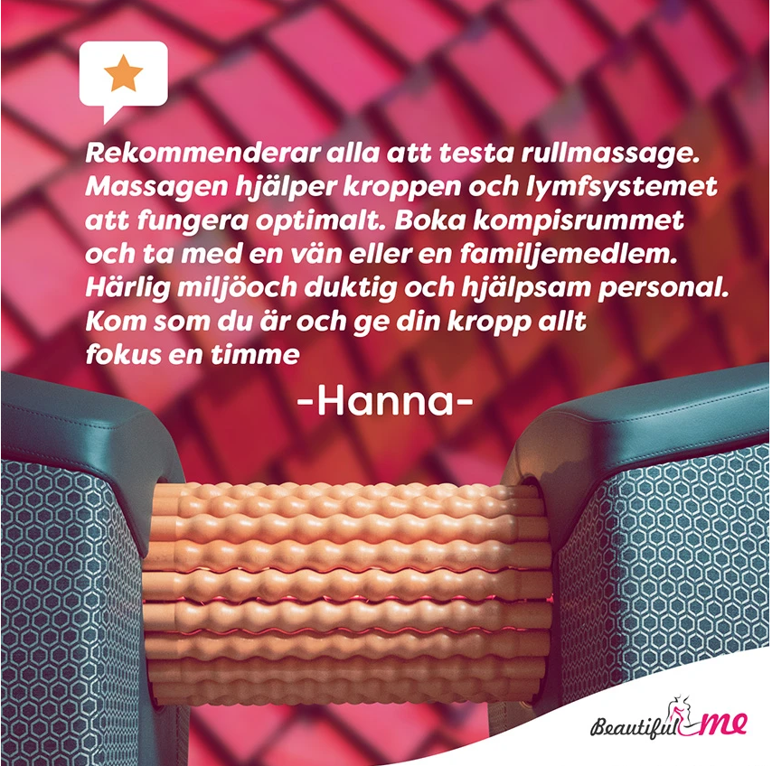 Rullmassagen hjälper kroppen att fungera optimalt och även bli av med extra fettcentimetrar. Maskinens rullar rör vid din hud och stimulerar ytliga muskler. Det resulterar i förlorade kilon och minskade centimetrar, minskade svullnader och celluliter.